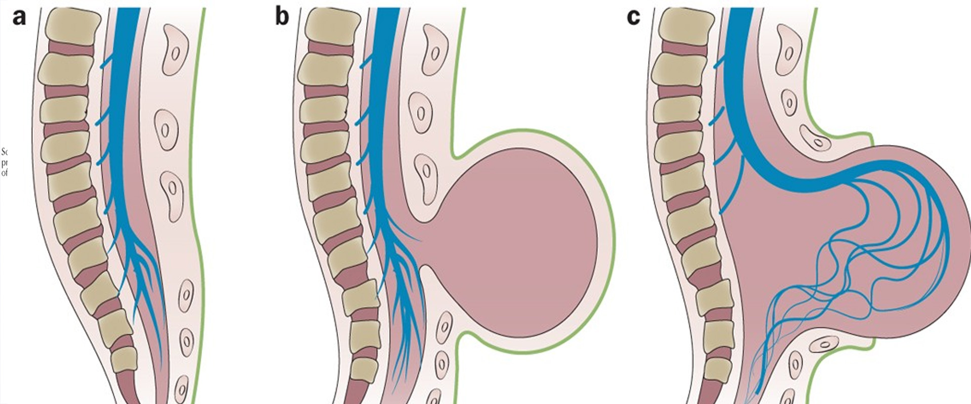 These disorders are a due to defect in the formation of the spinal cord and surrounding tissues during the foetal stage of life. The more serious ones called Myelomeningocoeles have open defects with leaking cerebrospinal fluid and need urgent repair after birth. There are a large spectrum of normal or slightly dystrophic skin covered lesions which require planned surgery to free the spinal cord from tethering to the surrounding tissues. There are various types of these defects like Limited Dorsal Myeloschisis, Terminal Myelocystocoele, Split cord Malformation, Spinal Lipoma etc. All these defects can cause varying degrees of lower limb weakness , deformity and bowel and bladder dysfunction.